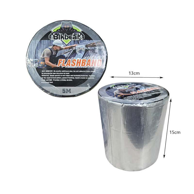 Η αυτοκόλλητη ταινία στεγανοποίησης Flashband της Bikbear είναι η ιδανική λύση για άμεσες και ανθεκτικές επισκευές σε στέγες, υδρορροές, παράθυρα, σωλήνες, μπαλκόνια και ρωγμές σε τοίχους ή τσιμέντο. Κατασκευασμένη με επικάλυψη αλουμινίου και ενισχυμένο κολλητικό υπόστρωμα, εφαρμόζεται εύκολα χωρίς τη χρήση επιπλέον κόλλας. Ανθεκτική στις καιρικές συνθήκες και το νερό, προσφέρει μακροχρόνια προστασία και απόλυτη στεγανότητα.