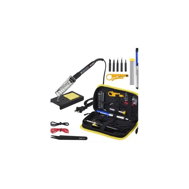 Συνοδεύεται από 15 τεμάχια, περιλαμβάνοντας διάφορες μύτες κόλλησης, απορροφητήρα κόλλησης, λαβίδες, σύρμα κόλλησης και άλλα απαραίτητα εργαλεία.