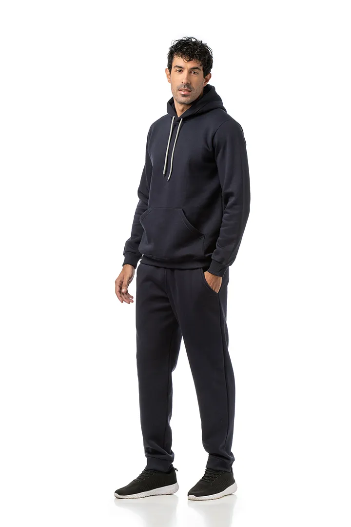 Ανδρική φούτερ μπλούζα τρίκλωνη με κουκούλα, μάρσιπο, στάμπα και χνούδι