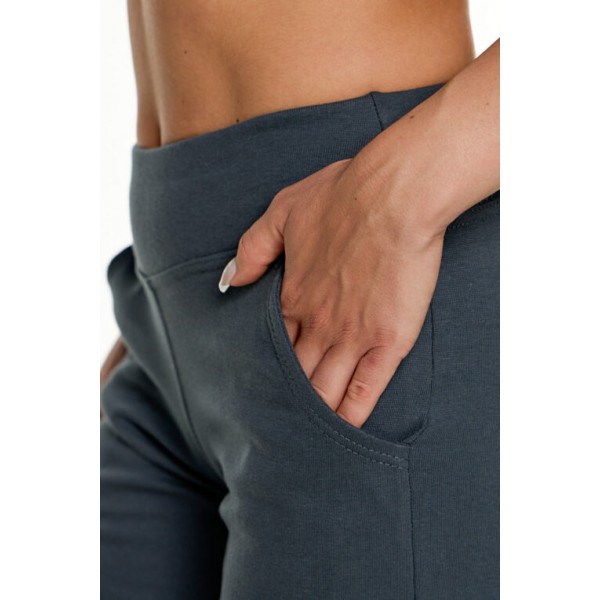 Γυναικείο παντελόνι φούτερ τρίκλωνο με χνούδι φαρδύ με λάστιχο κάτω από 100% Βαμβάκι.