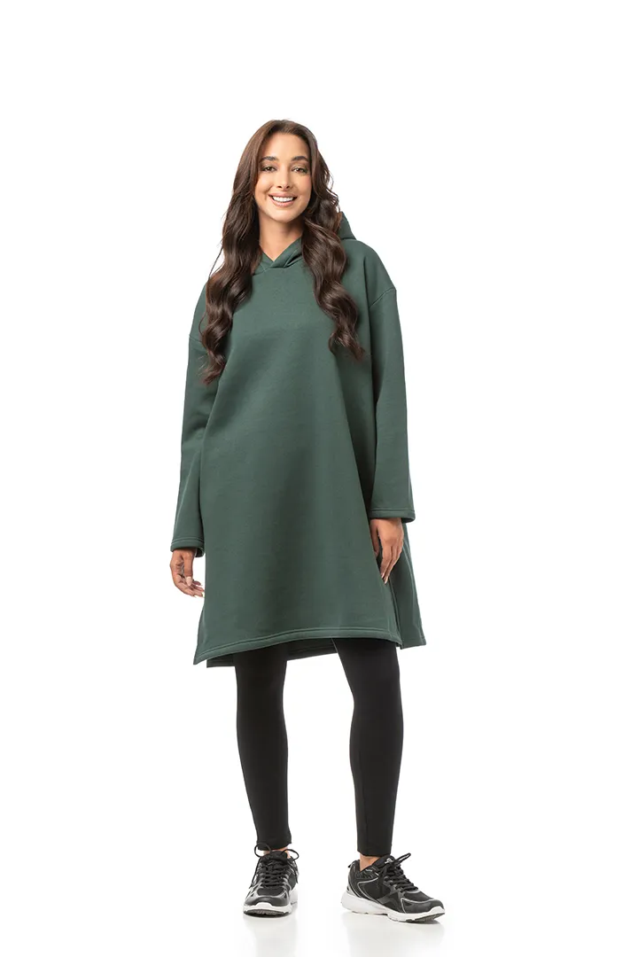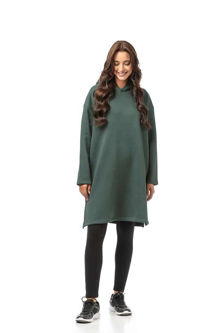 BODYMOVE Μπλουζοφόρεμα τρίκλωνο με κουκούλα και τσέπες #1466 ΚΥΠΑΡΙΣΣΙ