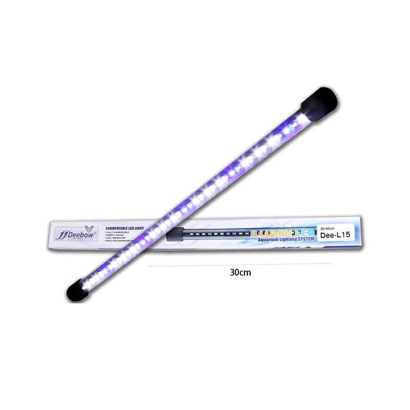 Υποβρύχιος φωτισμός LED ενυδρείου μοντέλο Dee L15, ιδανικός για να προσφέρει εντυπωσιακό φωτισμό και να αναδείξει τα χρώματα των ψαριών και της διακόσμησης. Διαθέτει πολύχρωμο φωτισμό LED (λευκό, μπλε, κόκκινο και πράσινο), με δυνατότητα εναλλαγής λειτουργιών για διαφορετικά εφέ μέσα στο ενυδρείο.