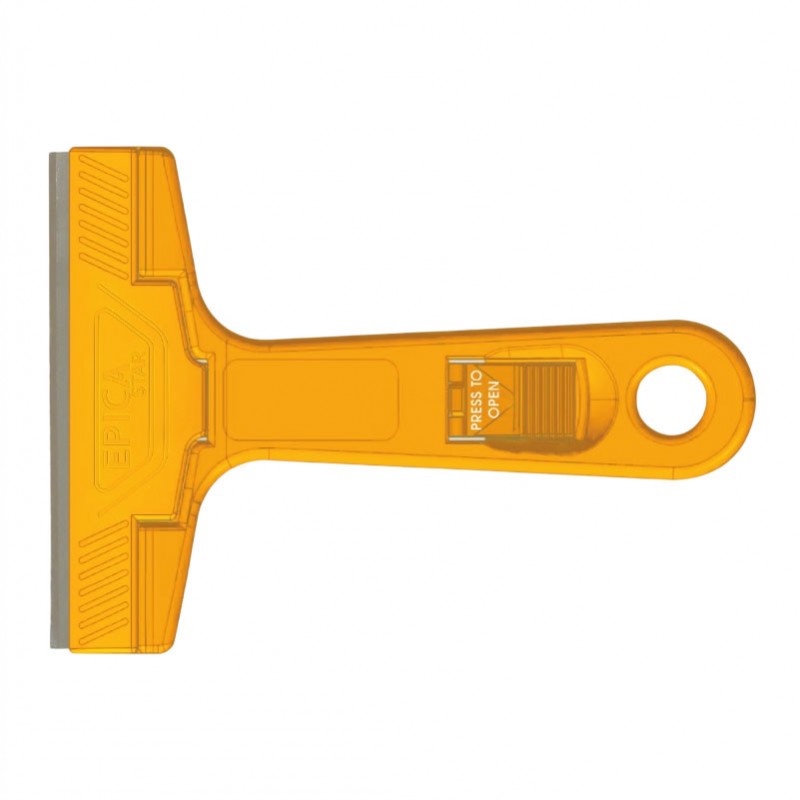 Ο ξύστης επιφανειών EPICA STAR είναι το ιδανικό εργαλείο για την απομάκρυνση επίμονων λεκέδων, κόλλας, μπογιάς ή αυτοκόλλητων από λείες επιφάνειες όπως γυαλί, κεραμικές εστίες και πλακάκια. Διαθέτει ανθεκτική λεπίδα από μέταλλο για αποτελεσματικό καθάρισμα και ασφαλές σύστημα ανοίγματος με μηχανισμό “Press to Open” για εύκολη αντικατάσταση της λεπίδας. Το εργονομικό του χερούλι προσφέρει άνετο κράτημα και ακρίβεια στη χρήση.