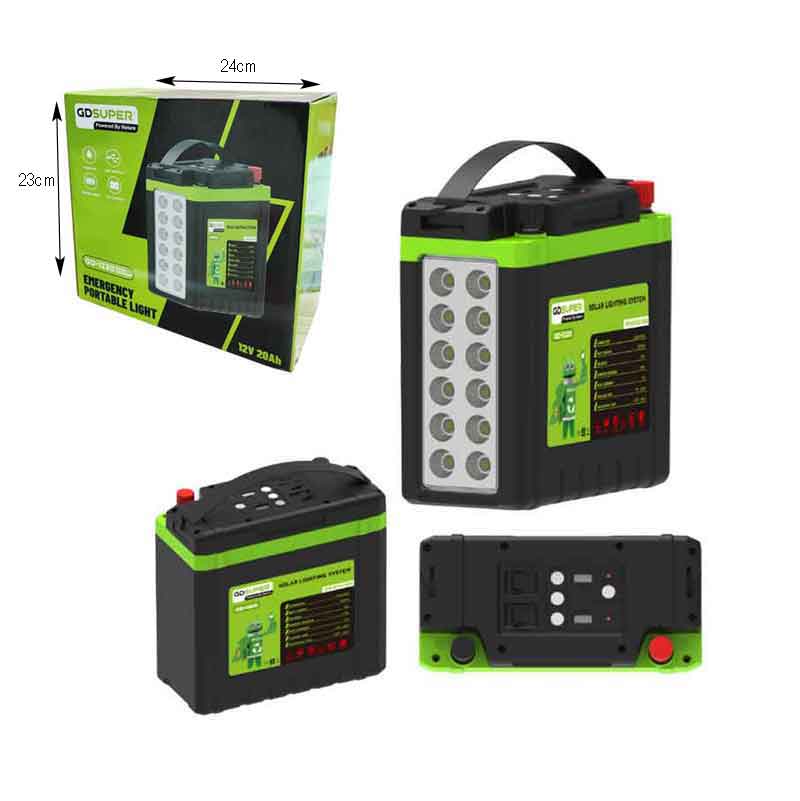 GDSuper Φορητό Φως Έκτακτης Ανάγκης – Μπαταρία Αποθήκευσης Ηλιακής Ενέργειας 12V 20Ah GD-1220 – Emergency portable light 0234063