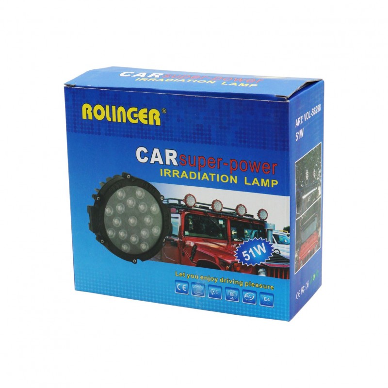 -23%ΚΩΔΙΚΟΣ: 895798LED προβολέας αυτοκινήτου στρογγυλού σχήματος από την εταιρεία Rolinger. Ένας προβολέας μπορεί να τοποθετηθεί σε διάφορα σημεία στο εξωτερικού του αυτοκινήτου και να δώσει άπλετο φως σε συνθήκες κακού φωτισμού ή στο σκοτάδι. Επειδή παράγει πολύ δυνατό φως, το οποίο μπορεί να μειώσει την ορατότητα των άλλων οδηγών, προορίζεται μόνο για off-road χρήση, δηλαδή είτε κυριολεκτικά εκτός δρόμου είτε σε ελεγχόμενα περιβάλλοντα όπου δεν υπάρχουν άλλα οχήματα.
