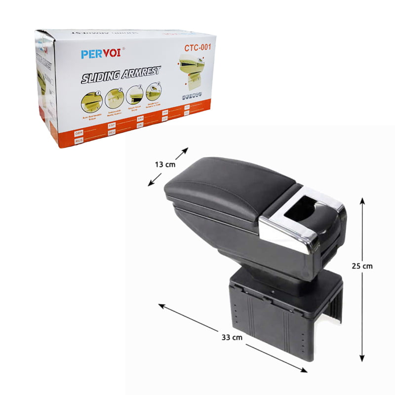 PerVoi Τεμπέλης Αυτοκινήτου με Ποτηροθήκη & Τασάκι CTC-001 – Sliding Armrest 014406