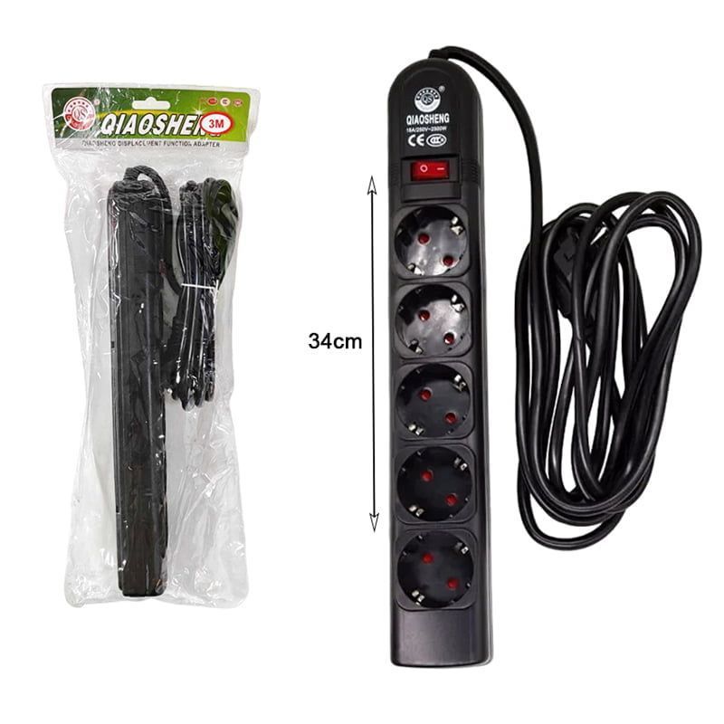 QIAOSHENG πολύμπριζο 5 θύρες 16A/250V~2500W 3M - Displacement function adapter 141253