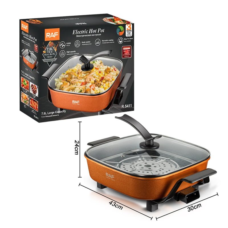RAF Ηλεκτρικό τηγάνι με αντικολλητική επίστρωση 7.0L 1350W R.5411 – Electric Hot Pot 97027