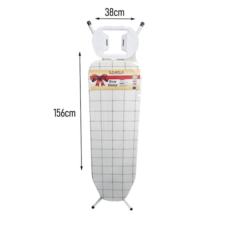 Η σιδερώστρα Sidirela New Daisy είναι σχεδιασμένη για άνεση, σταθερότητα και αντοχή. Με φαρδιά επιφάνεια 38x120cm και ρυθμιζόμενο ύψος, προσφέρει εύκολο και ξεκούραστο σιδέρωμα. Είναι κατάλληλη για χρήση με σίδερο ατμού και διαθέτει ανθεκτική βάση στήριξης για το σίδερο.