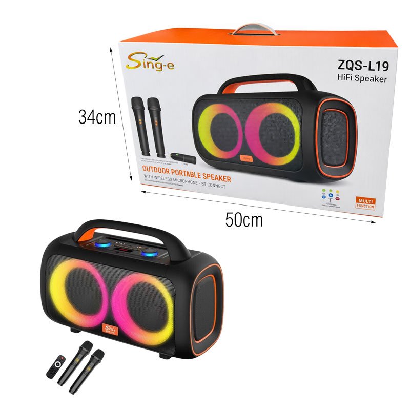 Υποστηρίζει ασύρματη σύνδεση Bluetooth για εύκολη αναπαραγωγή μουσικής από κινητά και άλλες συμβατές συσκευές, ενώ διαθέτει είσοδο MicroSD, USB (U-Disk) και AUX για περισσότερες επιλογές σύνδεσης. Περιλαμβάνει δύο ασύρματα μικρόφωνα, καθιστώντας το ιδανικό για karaoke και ομιλίες.