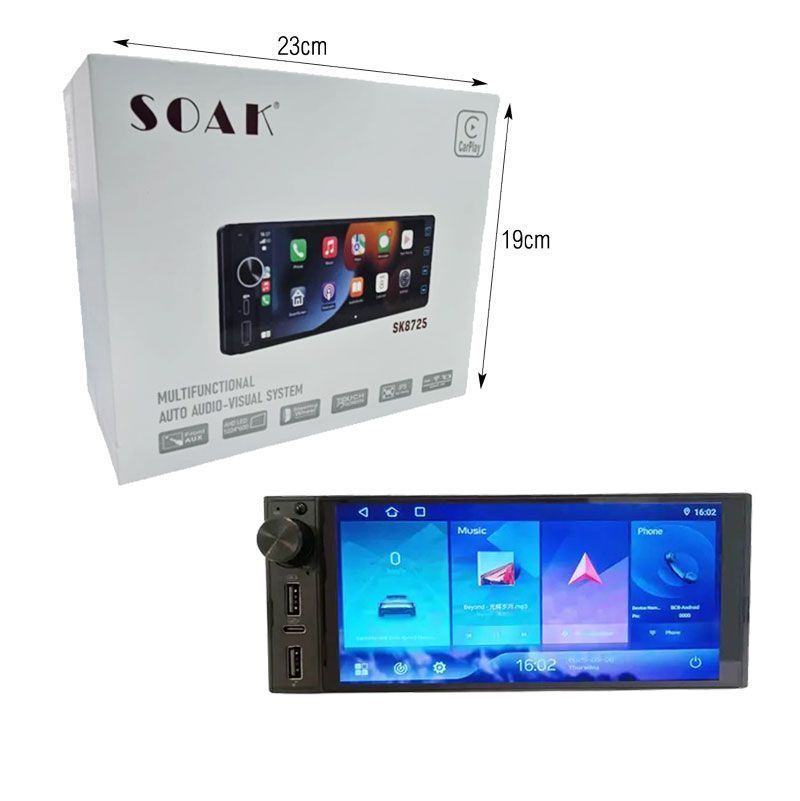 Η SOAK SK8725 είναι η ιδανική αναβάθμιση για το αυτοκίνητό σας, προσφέροντας κορυφαία πλοήγηση και ψυχαγωγία σε μία συσκευή. Εξοπλισμένη με λειτουργικό σύστημα Android 15, 6GB RAM και 64GB αποθηκευτικό χώρο, προσφέρει αστραπιαία απόκριση και άνετη χρήση. Η 6″ HD+ (1440×720 pixel) οθόνη αφής εξασφαλίζει κρυστάλλινη εικόνα, ενώ η ενσωματωμένη υποστήριξη για Android Auto και Apple CarPlay σας επιτρέπει να προβάλλετε εύκολα το κινητό σας στην οθόνη, είτε ενσύρματα είτε ασύρματα.