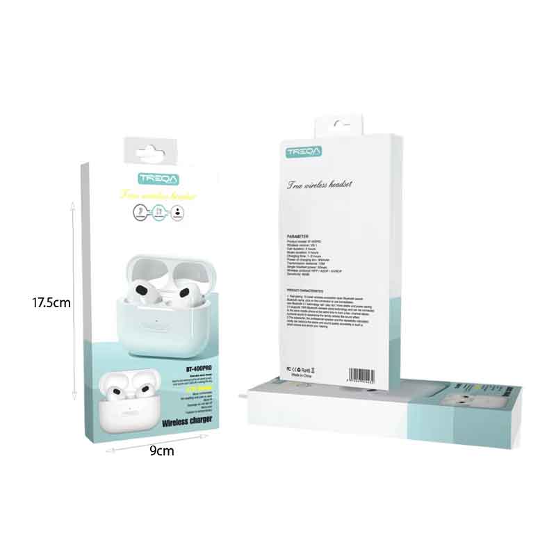 Τα ασύρματα ακουστικά TREQA BT-400PRO προσφέρουν καθαρό και σταθερό ήχο με τεχνολογία Bluetooth 5.1, ιδανικά για καθημερινή χρήση, εργασία και άθληση. Διαθέτουν εργονομικό σχεδιασμό για άνετη εφαρμογή και λειτουργία TWS για στερεοφωνικό ήχο. Η θήκη φόρτισης επιτρέπει πολλαπλές φορτίσεις, προσφέροντας αυτονομία καθ’ όλη τη διάρκεια της ημέρας. Με υποστήριξη πρωτοκόλλων HFP, A2DP και AVRCP, τα ακουστικά εξασφαλίζουν άριστη εμπειρία κλήσεων και μουσικής, ενώ η σύνδεση γίνεται γρήγορα και εύκολα με κάθε συμβατή συσκευή.