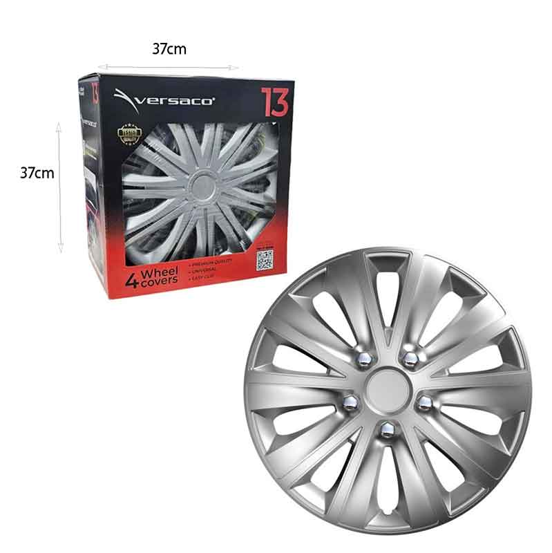 Σετ τάσια αυτοκινήτου της εταιρείας Versaco με διάμετρο 13 ίντσες. Αντικαθιστούν τα εργοστασιακά τάσια και αναβαθμίζουν την συνολική εμφάνιση του αυτοκινήτου. Η επιλογή της διαστάσης θα πρέπει να συμβαδίζει με τις διαστάσεις των ζαντών. Παράλληλα, προστατεύουν τις ζάντες από τις γρατζουνιές και τη φθορά.