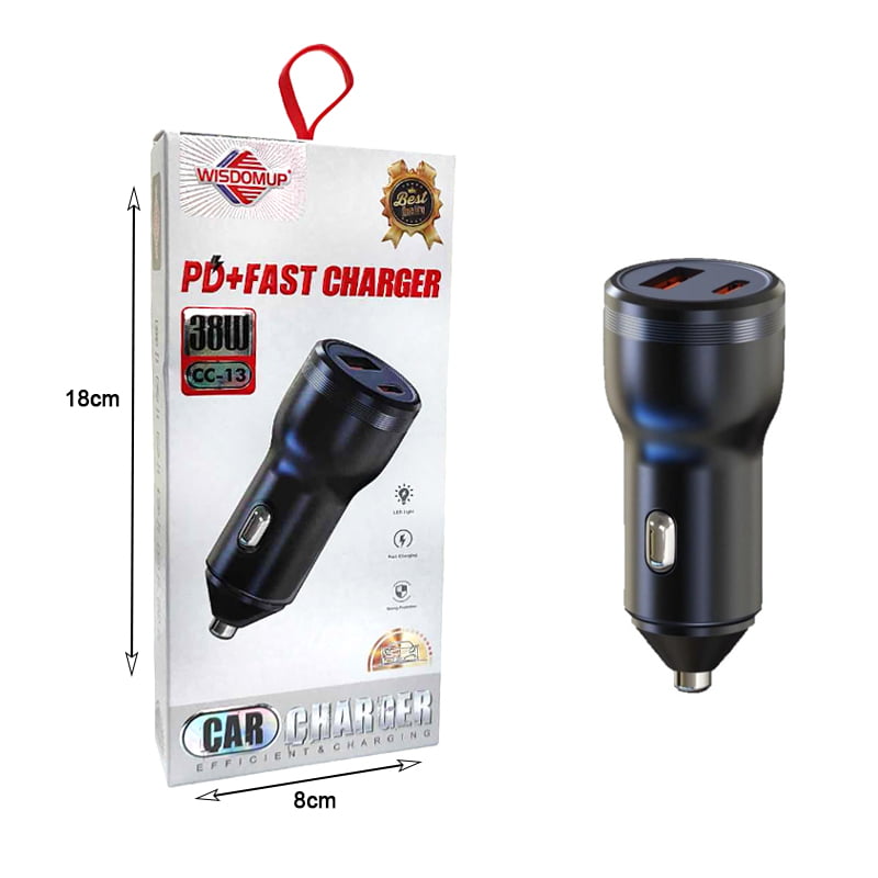 Wisdomup Φορτιστής Αυτοκινήτου με 2 θύρες CC-13 38W – PD + Fast car charger 99006